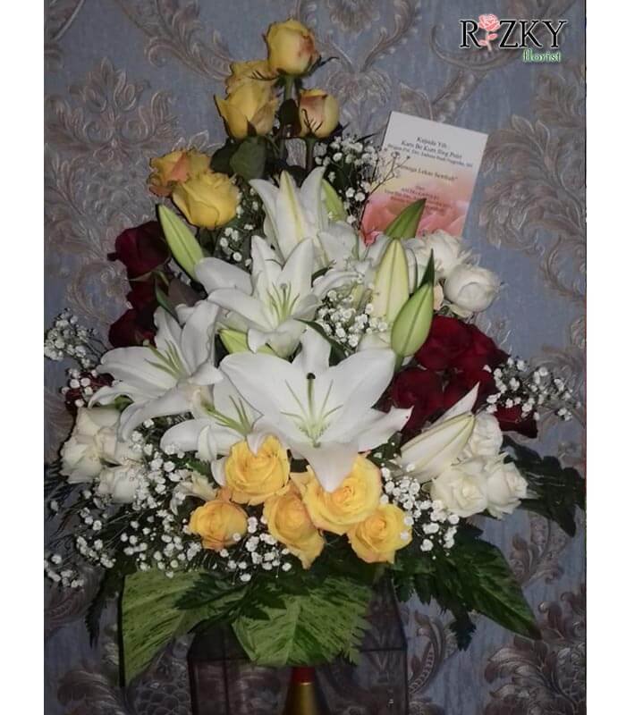 - Perpaduan warna bunga bisa disesuaikan dengan permintaan customer atau stok tersedia di florist